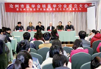 開幕式上,市衛(wèi)生局副局長付立才致辭。大會選舉產生了第一屆滄州市醫(yī)學會核醫(yī)學分會組織機構成員,我院核醫(yī)學科主任鄒金海當選為主任委員。隨后,與會專家們就甲狀腺疾病核醫(yī)學專業(yè)治療、內科藥物治療及外科治療等方面的內容作了精彩的學術講座。