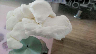 該患者為一中年男性,自高處不慎墜落導(dǎo)致右側(cè)跟骨粉碎性骨折,骨折移位較大,為復(fù)雜型骨折。對(duì)于該疾病使用過(guò)去傳統(tǒng)影像學(xué)方法難以直觀了解骨折情況,年輕醫(yī)生較難準(zhǔn)確評(píng)估、分型,模擬手術(shù)多在二維圖紙或者術(shù)者的腦海中進(jìn)行,且術(shù)中只能依靠經(jīng)驗(yàn)進(jìn)行操作,選擇規(guī)格最適合病人的置入物,或現(xiàn)場(chǎng)進(jìn)行折彎、剪裁,調(diào)整成較為合適的尺寸,螺釘方向需依靠醫(yī)生的解剖知識(shí)及經(jīng)驗(yàn)進(jìn)行確定,過(guò)程復(fù)雜,準(zhǔn)確性較差,且耗時(shí)長(zhǎng),透視多,創(chuàng)傷大。而通過(guò)3D打印技術(shù)將患者術(shù)前跟骨CT平掃加三維重建產(chǎn)生的DICOM數(shù)據(jù)經(jīng)計(jì)算機(jī)處理、修改后獲得打印模型的標(biāo)準(zhǔn)格式數(shù)據(jù),連接3D打印機(jī),根據(jù)需要選擇不同類(lèi)型的3D打印技術(shù)進(jìn)行三維物理模型的打印(3D模型圖如圖)。利用打印出來(lái)的骨折模型幫助醫(yī)生與患者及家屬交流,為患者和醫(yī)生提供觸覺(jué)與視覺(jué)上的體驗(yàn),進(jìn)行術(shù)前演練,術(shù)前方案的設(shè)計(jì),大大節(jié)省了手術(shù)時(shí)間。需要多長(zhǎng)的鋼板、幾顆螺釘,醫(yī)生在術(shù)前就能心中有數(shù),不但能減少術(shù)中出血、也可有效減小創(chuàng)傷,術(shù)中精確度高,縮短患者術(shù)后恢復(fù)時(shí)間,為患者節(jié)省了醫(yī)療費(fèi)用。