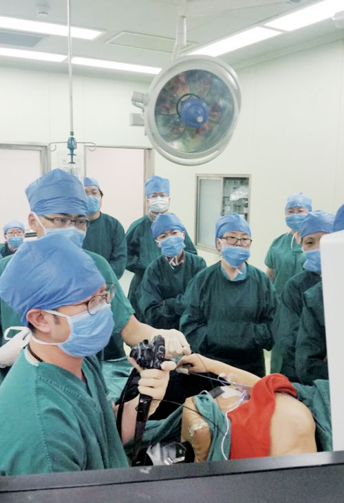 我院消化內(nèi)科進行了目前難度最高的4級手術(shù)消化內(nèi)鏡微創(chuàng)操作演示:賁門失弛緩癥的內(nèi)鏡下隧道技術(shù)(POME)1例,內(nèi)鏡黏膜下剝離術(shù)(ESD)3例,4例手術(shù)非常成功,并得到了與會同仁的充分肯定。我院消化內(nèi)科于2011年開始開展ESD技術(shù),至今已開展胃ESD 224例、結(jié)腸ESD 25例、內(nèi)鏡經(jīng)粘膜下隧道腫物切除(STER)31例,POME 20例。本次學習班,采用手把手教學的形式幫助大家在實踐中發(fā)現(xiàn)問題、解決問題,提高手術(shù)操作技能,更好地為患者提供高質(zhì)量的醫(yī)療服務。