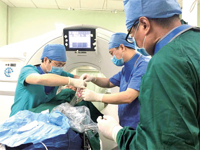 近日,核醫(yī)學科成功完成兩例125-碘粒子植入術治療中心型晚期肺癌。
