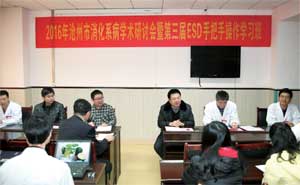 11月19日-20日,2016滄州市消化系病學(xué)術(shù)研討會暨第三屆ESD手把手操作學(xué)習(xí)班、河北省消化疑難病例MDT討論會在我院隆重召開。來自河北醫(yī)科大學(xué)第二醫(yī)院、河北醫(yī)科大學(xué)第三醫(yī)院、天津醫(yī)科大學(xué)總醫(yī)院、天津市質(zhì)控中心、河北省人民醫(yī)院、河北北方學(xué)院附屬第一醫(yī)院等省級醫(yī)院以及滄州市區(qū)及所轄縣市醫(yī)院的消化內(nèi)科專家及醫(yī)生300余人參加,此次會議由河北省醫(yī)學(xué)會消化病學(xué)分會主辦,我院承辦,我院消化內(nèi)一科主任鄭國啟教授任大會主席。
