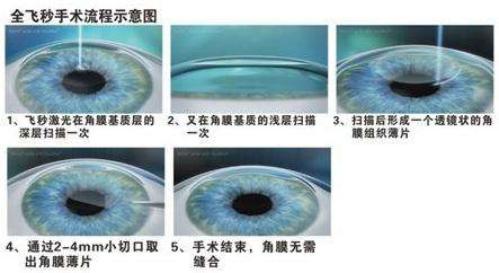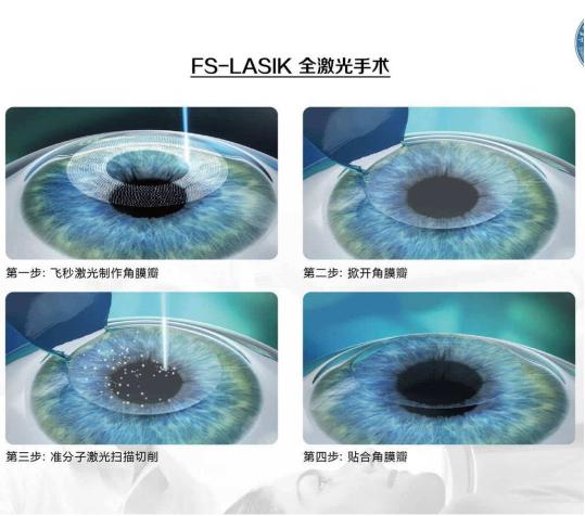 三、FS-LASIK(半飛)也稱飛秒全激光手術(shù)。先由飛秒激光設(shè)備精確地制作出更均勻、更完美的角膜瓣,在其下做準(zhǔn)分子激光角膜切削。 術(shù)過(guò)程無(wú)需手術(shù)刀,夜間視力更好,術(shù)后視覺(jué)質(zhì)量更佳等諸多有優(yōu)點(diǎn)。如下圖: