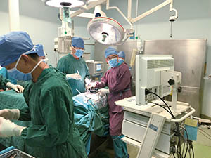 經(jīng)過2個半小時,手術(shù)順利完成,術(shù)中出血不到100毫升,術(shù)后第二天癥狀消失,可下床行走。