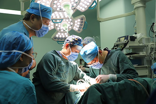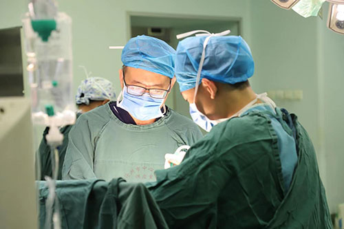 在明確傷情和毗鄰關(guān)系并做好拔除準備后,周繼梧小心翼翼地從傷者體內(nèi)拔出護欄和殘留在身體里的汽車配件;緊接著,張楠為傷者進行肺修補術(shù)、胸內(nèi)異物取出術(shù)、肋骨骨折固定術(shù)和胸部外傷清創(chuàng)術(shù),利用C型臂對傷者進行透視,確認沒有異物殘留后,對傷口進行修復(fù)和縫補;隨后,甲狀腺乳腺外一科主任張維對傷者胸大肌及左側(cè)乳腺等損傷部位繼續(xù)進行探查,并為其進行胸大肌修補及乳腺上方游離皮瓣整形手術(shù)。
