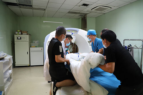 16點08分,張女士被送至CT室進行術(shù)前檢查;與此同時,心胸外科、甲狀腺乳腺外一科、麻醉一科、骨一科、輸血科等多科聯(lián)動,迅速完善手術(shù)前準備。