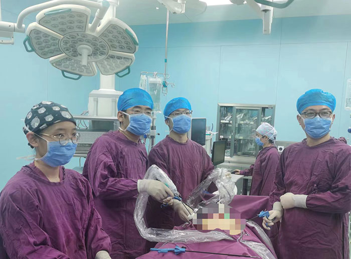 手術(shù)前一天,結(jié)直腸肛門外科副主任劉桂偉向王女士及其家屬詳細(xì)講解了ERAS、手術(shù)過程及術(shù)后注意事項(xiàng)。在麻醉一科tubeless麻醉技術(shù)的保障下,結(jié)直腸肛門外科與婦一科成功為患者實(shí)施了腹腔鏡下直腸癌聯(lián)合右側(cè)附件切除術(shù)。
