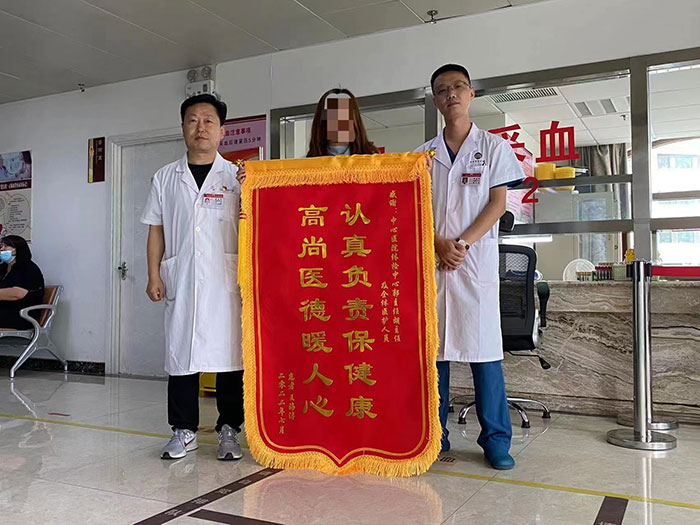 劉先生年紀輕輕就被癌癥盯上是不幸的,但他又是幸運的,能夠早期發(fā)現(xiàn)病灶并及時切除。正是這通電話,讓劉先生意識到年輕不是健康的資本,疾病不挑年齡。也正是這通電話,讓劉先生真切感受到了我院體檢中心的盡職盡責(zé)。為此,劉先生特意將寫有“認真負責(zé)保健康 高尚醫(yī)德暖人心”的錦旗送到體檢中心,以表謝意。