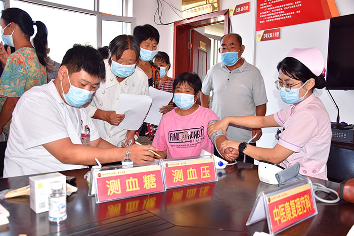 期間,鹽山分院的專家們在鹽山縣楊集鎮(zhèn)耿家村開展“黨建結(jié)對凝聚發(fā)展合力 健康護航助力鄉(xiāng)村振興”惠民健康體檢義診活動。義診現(xiàn)場針對農(nóng)村常見病、多發(fā)病,神經(jīng)內(nèi)科、心血管內(nèi)科、綜合內(nèi)科、骨科、中醫(yī)科的專家為耿家村村民進行了健康義診,免費進行血壓、血糖、心電圖檢查,并為村民建立健康檔案。活動中接待村民問診180余人次,發(fā)放健康知識宣傳冊600余份。