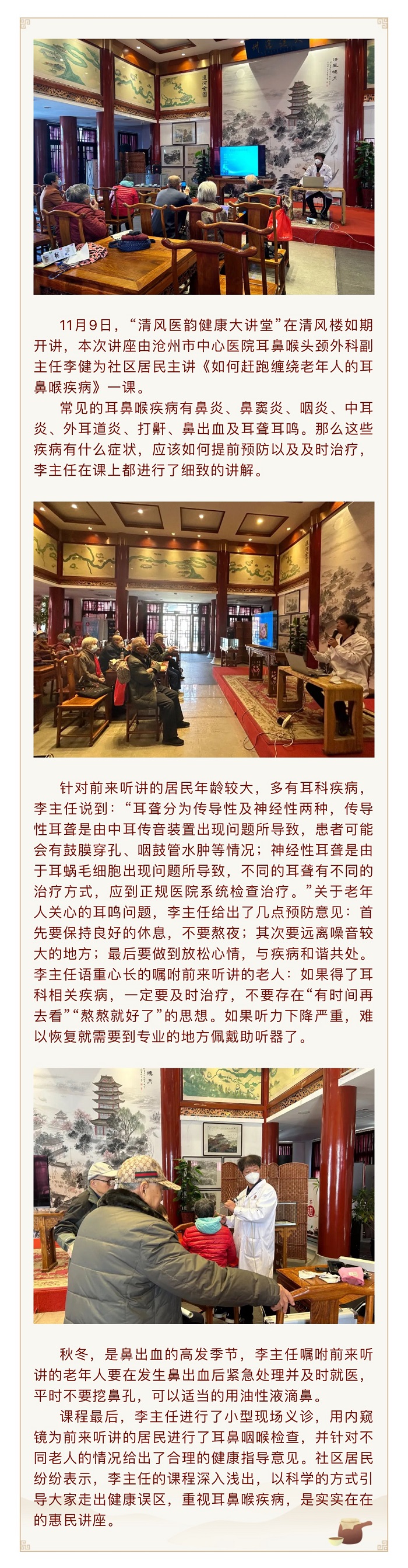 “清風(fēng)醫(yī)韻”健康大講堂 | 如何趕跑纏繞老年人的耳鼻喉疾???