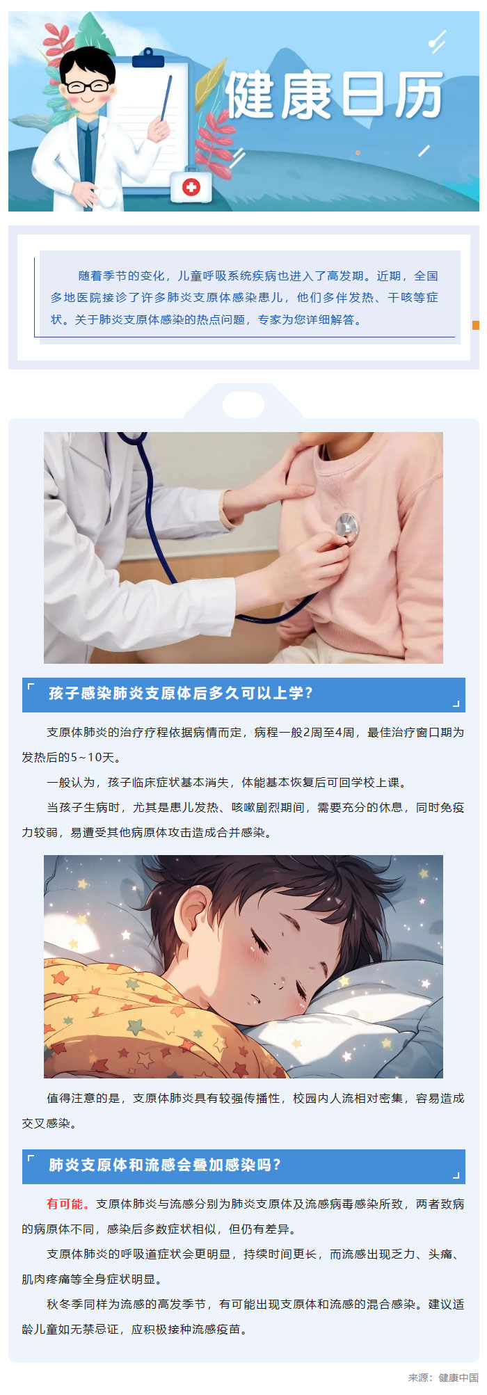 孩子感染肺炎支原體后,多久可以上學(xué)?肺炎支原體和流感會(huì)疊加感染嗎?