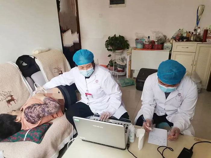 買(mǎi)福運(yùn)老人家住福馨小區(qū),近期腹脹無(wú)力,生活不便??叼B(yǎng)集團(tuán)福安社區(qū)日間照料中心的工作人員及時(shí)發(fā)現(xiàn)并關(guān)注老人的情況,4月11日一大早,專(zhuān)家團(tuán)隊(duì)帶著超聲儀器來(lái)到老人家中,為老人做了超聲檢查。老人感動(dòng)地說(shuō):“你們來(lái)到家中為我們服務(wù),省去了去大醫(yī)院的繁瑣,讓我們不用出門(mén)就能看病、做檢查,真是太感謝你們了”。