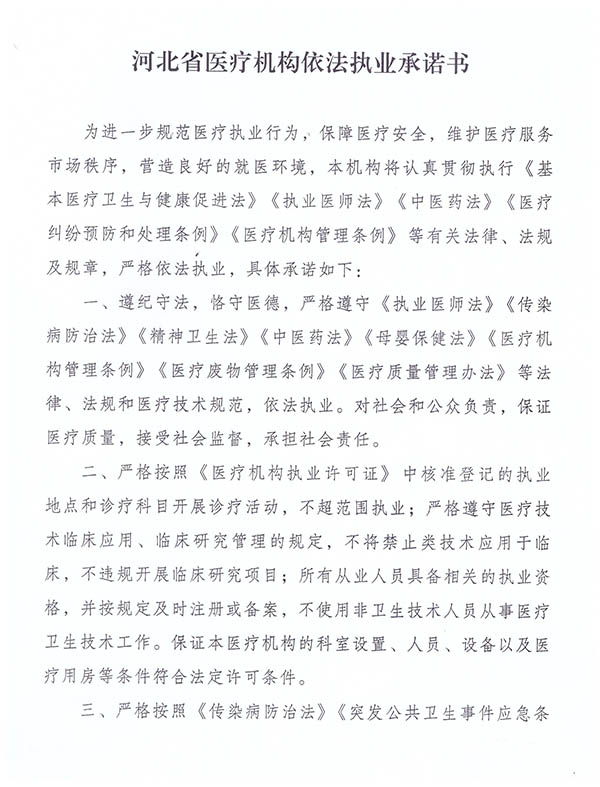 河北省醫(yī)療機(jī)構(gòu)依法執(zhí)業(yè)承諾書(shū)