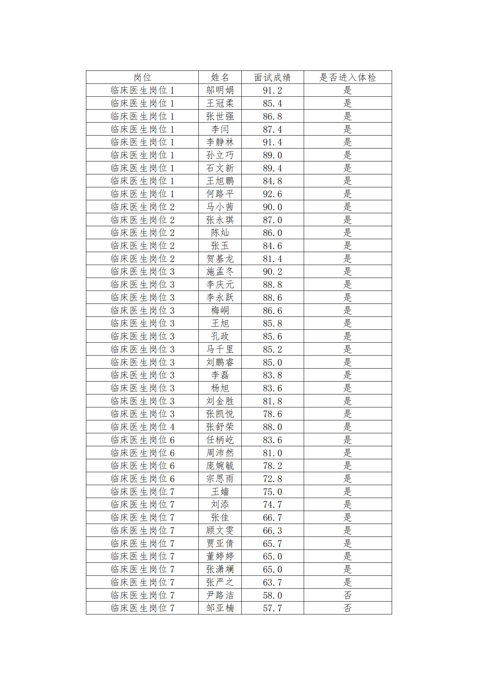 根據(jù)《事業(yè)單位人事管理?xiàng)l例》、《河北省事業(yè)單位公開招聘工作人員暫行辦法》、《滄州市事業(yè)單位公開招聘工作人員實(shí)施辦法(試行)》文件精神要求,以及滄州市人才強(qiáng)市具體工作要求,在衛(wèi)健委的組織和監(jiān)督下,我院于2023年12月25日-2023年12月26日完成證件審核和面試工作,現(xiàn)將面試成績(jī)公示如下: