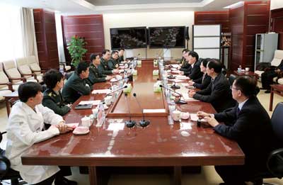 為全面落實(shí)習(xí)近平總書記提出的京津冀協(xié)同發(fā)展的國(guó)家戰(zhàn)略,實(shí)現(xiàn)京津冀全面對(duì)接,并以此為機(jī)遇提升我市綜合服務(wù)能力,進(jìn)一步改善民生,更好地服務(wù)于滄州沿海經(jīng)濟(jì)社會(huì)發(fā)展強(qiáng)市建設(shè),10月29日,帶著省委主要領(lǐng)導(dǎo)的親筆信,帶著全市人民對(duì)更高級(jí)別醫(yī)療的就醫(yī)需求和對(duì)京滄合作共贏的殷殷期盼,滄州市人民政府市長(zhǎng)王大虎帶隊(duì),副市長(zhǎng)李麗華,秘書長(zhǎng)韓杰,滄州市衛(wèi)生局局長(zhǎng)回寶柱,我院黨委書記、院長(zhǎng)溫秀玲、副院長(zhǎng)徐澤升一行6人來到中國(guó)人民解放軍總醫(yī)院(301醫(yī)院),受到了以李書章院長(zhǎng)為首的醫(yī)院領(lǐng)導(dǎo)班子的歡迎。經(jīng)過懇談,雙方就開展合作事宜達(dá)成初步意向。