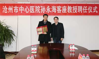 孫永海教授,中國疼痛醫(yī)師協(xié)會青年委員會副主任委員,擅長利用微創(chuàng)介入技術(shù)治療頭痛、神經(jīng)病理性疼痛、軟組織疼痛、缺血性疼痛、晚期癌性疼痛。獲省部級三等獎2項,軍隊科技進(jìn)步二等獎2項,國家發(fā)明專利1項,國家實用新型專利2項。我院特聘孫永海教授為客座教授,黨委副書記、副院長白錫波為其頒發(fā)了聘任證書。
