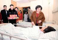 2月18日,農(nóng)歷年三十,溫秀玲院長(zhǎng)來到肛腸外科病房看望了因病住院無法回家過年的患者賈淑珍。58歲的賈淑珍老伴已經(jīng)去世,現(xiàn)住黃驊市呂橋鎮(zhèn),她患有直腸癌,剛剛做完手術(shù),現(xiàn)在由女兒、兒媳照顧。溫院長(zhǎng)為她送上慰問品,并鼓勵(lì)她好好養(yǎng)病,爭(zhēng)取早日康復(fù)。