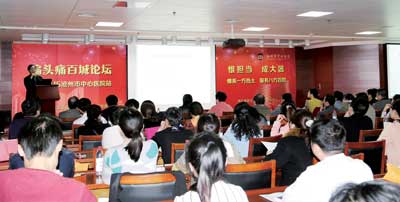 3月15日,301醫(yī)院2015年偏頭痛百城論壇滄州站在我院腦科醫(yī)院舉辦,中國人民解放軍總醫(yī)院(301醫(yī)院)神經(jīng)內(nèi)科主任于生元教授、河北省人民醫(yī)院神經(jīng)內(nèi)科醫(yī)學(xué)博士王賀波教授分別就偏頭疼及藥物過度使用引起的頭痛問題與全國的神經(jīng)專家進(jìn)行了精彩的學(xué)術(shù)講座。