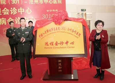 3月25日,解放軍總醫(yī)院(301)滄州合作醫(yī)院遠(yuǎn)程會(huì)診中心、疑難病會(huì)診中心在我院正式掛牌成立,標(biāo)志著我院與解放軍總醫(yī)院的合作又向前推進(jìn)了一大步。從此,滄州百姓到北京大醫(yī)院就醫(yī)的奔波之苦和301醫(yī)院一號(hào)難求的狀況即將得到改善。在市中心醫(yī)院遠(yuǎn)程會(huì)診中心、疑難病會(huì)診中心,即可通過(guò)以互聯(lián)網(wǎng)為基礎(chǔ)的智慧醫(yī)療,直通301醫(yī)院,讓患者更好更快更省錢(qián)的看好病。三部會(huì)診熱線分別為3010301,3011301,3013011。