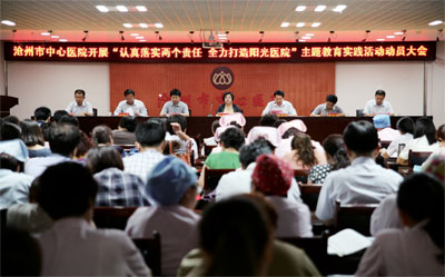 6月19日下午,醫(yī)院召開“認(rèn)真落實兩個責(zé)任 打造陽光醫(yī)院主題教育實踐活動”動員大會,全體院領(lǐng)導(dǎo)出席,全院班組長以上人員參加了大會,動員大會由黨委副書記、副院長白錫波主持。
