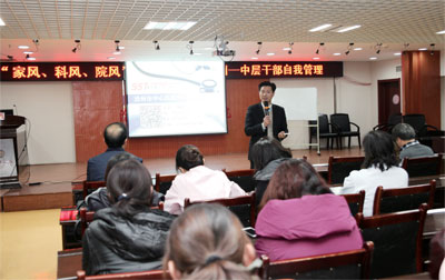 11月24日,我院舉辦“家風(fēng)、科風(fēng)、院風(fēng)”文化體系建設(shè)系列培訓(xùn)——中層干部的自我管理,由副院長張力爭主持,全院班組長以上干部和部分職能科室人員參加。