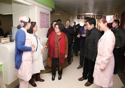 為了最大程度的減輕臨床一線(xiàn)壓力,更好地為患者服務(wù),以溫秀玲院長(zhǎng)為首的醫(yī)院領(lǐng)導(dǎo)班子在節(jié)后第一時(shí)間帶領(lǐng)全體職能處室負(fù)責(zé)人,分成幾隊(duì)深入到腦科醫(yī)院、門(mén)診各診區(qū)、醫(yī)技檢查部門(mén)、臨床科室病區(qū)等重點(diǎn)部位和區(qū)域進(jìn)行
