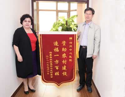 為進(jìn)一步推進(jìn)美麗鄉(xiāng)村建設(shè),5月13日,我院為幫扶村滄縣崔爾莊鎮(zhèn)鄭爾莊村捐款10萬元,用于幫助該村改善民生,優(yōu)化環(huán)境。村委會代表全村百姓向我院院長溫秀玲送上一面寫有“資助農(nóng)村建設(shè) 造福一方百姓”的大紅錦旗,表示對我院的真誠感謝。