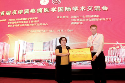 8月6日,由北京韓濟生疼痛研究院、《中國疼痛醫(yī)學(xué)雜志》編輯部主辦,我院疼痛科承辦的京津冀疼痛醫(yī)學(xué)國際交流會在滄州召開,來自俄羅斯、韓國以及京津冀疼痛專業(yè)組成的500名專家團進行了精彩授課及手術(shù)觀摩。我院成為中俄椎間盤激光修復(fù)系統(tǒng)河北培訓(xùn)中心,俄羅斯圣彼得堡巴甫洛夫國立醫(yī)科大學(xué)伊萬涅恩科·安德烈·瓦連金諾維奇教授為我院授牌。會上,我院聘請中日友好醫(yī)院疼痛科主任、中華醫(yī)師學(xué)會疼痛分會主委樊碧發(fā)教授為我院客座教授,院長溫秀玲為其頒發(fā)了聘任證書。