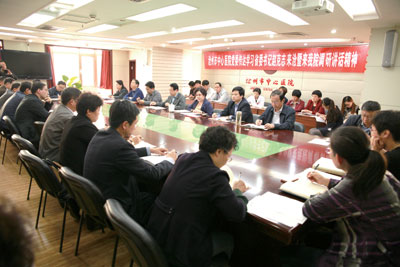 會(huì)議首先由院黨委書記、院長(zhǎng)溫秀玲同志傳達(dá)省委書記趙克志來滄州調(diào)研講話精神,并就參加趙克志書記在滄召開座談會(huì)精神和與會(huì)人員進(jìn)行分享;工會(huì)主席耿芬女同志傳達(dá)了市委常委(擴(kuò)大)會(huì)議精神,院長(zhǎng)助理張燕同志就貫徹落實(shí)講話精神,推進(jìn)“醫(yī)療助脫貧”做了具體部署和要求;黨委副書記、副院長(zhǎng)白錫波結(jié)合“兩學(xué)一做”學(xué)習(xí)教育活動(dòng),就貫徹講話精神提出了具體要求:一是要深刻認(rèn)識(shí)趙克志書記講話的重大意義,切實(shí)把思想和行動(dòng)統(tǒng)一到重要講話精神上來,二是要與“兩學(xué)一做”學(xué)習(xí)教育相結(jié)合,迅速掀起學(xué)習(xí)趙克志書記重要講話精神的熱潮,三是要以趙克志書記重要講話精神為指導(dǎo),全面推進(jìn)醫(yī)院各項(xiàng)工作任務(wù)的完成,四是要把學(xué)習(xí)貫徹《胡錦濤文選》作為一項(xiàng)重大任務(wù)抓實(shí)抓好,各黨總支、黨支部、各科室要立即行動(dòng)起來,認(rèn)真組織學(xué)習(xí)。