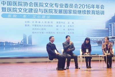 12月9日—11日,中國醫(yī)院協(xié)會醫(yī)院文化專業(yè)委員會2016年年會暨醫(yī)院文化建設(shè)與醫(yī)院發(fā)展國家級繼續(xù)教育培訓(xùn)班會議在南京召開,會議由中國醫(yī)院協(xié)會醫(yī)院文化專業(yè)委員會主辦,江蘇省人民醫(yī)院(南京醫(yī)科大學(xué)第一附屬醫(yī)院)承辦。來自全國各地近400名代表參加了會議。會議由中國醫(yī)院協(xié)會醫(yī)院文化專業(yè)委員會主任委員王虹主持。