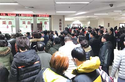 我院大樓門口車水馬龍,門診大廳內(nèi)人頭攢動。各個診區(qū)都坐滿了就診患者,收費、超聲、放射、采血……所有的窗口前,都排起了長龍。各科室的就診人次持續(xù)增多,不斷出現(xiàn)新的就診高峰。