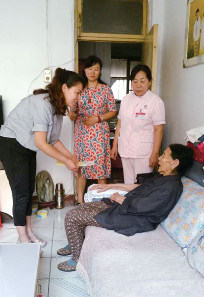 為紀(jì)念建黨96周年,弘揚(yáng)黨的光榮傳統(tǒng)和優(yōu)良作風(fēng),充分體現(xiàn)黨組織對(duì)老黨員的關(guān)懷和愛護(hù),在“七一”到來之際,6月28日,門診醫(yī)技黨總支第五黨支部組織黨員到103歲老黨員孟慶貴家中,為她進(jìn)行體檢,并對(duì)用藥及養(yǎng)生方面的指導(dǎo)。