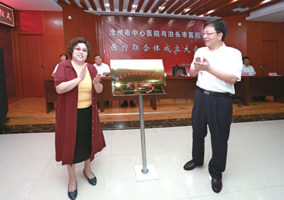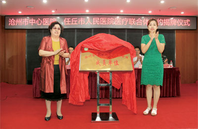 8月28日、30日,我院與泊頭市醫(yī)院、任丘市人民醫(yī)院舉行滄州市中心醫(yī)院醫(yī)聯(lián)體揭牌儀式,標(biāo)志著由我院和第一批15家縣級(jí)醫(yī)院組成的“滄州市中心醫(yī)院醫(yī)聯(lián)體”正式運(yùn)行、深入推進(jìn)。滄州市中心醫(yī)院醫(yī)聯(lián)體將通過??坡?lián)盟形式在管理幫扶、學(xué)科共建、人才培養(yǎng)、科研教學(xué)、雙向轉(zhuǎn)診、遠(yuǎn)程醫(yī)療等多方面發(fā)揮重要積極作用。
