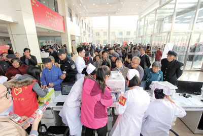 我院院領(lǐng)導(dǎo)堅(jiān)持用實(shí)際行動(dòng)回饋當(dāng)?shù)匕傩?,不搞慶典,不打廣告,節(jié)省宣傳費(fèi)用,返惠于民。自10月27日開(kāi)診,用一百天時(shí)間,為鹽山、孟村、海興60周歲以上的老年人免費(fèi)體檢。