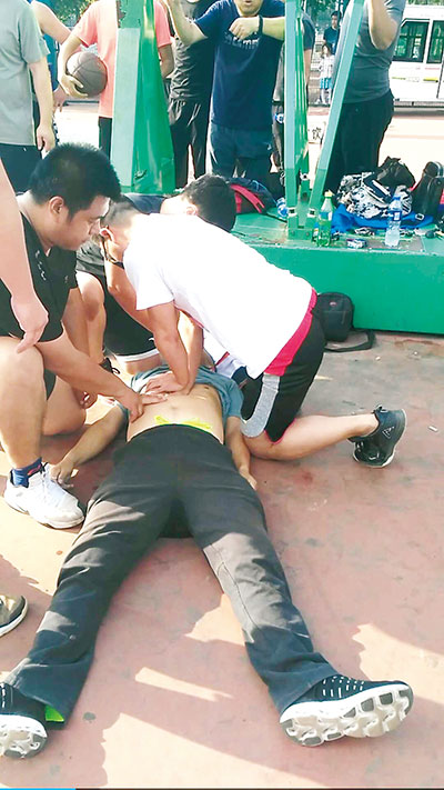 6月10日下午5時(shí)許,正在西體育場(chǎng)打球的蘇先生突感身體不適,便走到場(chǎng)邊休息,此時(shí)的他身上已經(jīng)開(kāi)始冒虛汗,不久后即栽倒在地。
