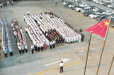 在雄壯的國歌聲中,護旗手邁著正步護衛(wèi)著國旗入場,身著職業(yè)服裝的醫(yī)生、護士、管理人員、后勤人員、天津醫(yī)科大學留學生等組成的觀旗方隊精神飽滿、隊列整齊、莊嚴挺立,注視著國旗冉冉升起,共同祝愿偉大的祖國更加繁榮昌盛,祝愿全國人民幸福安康。