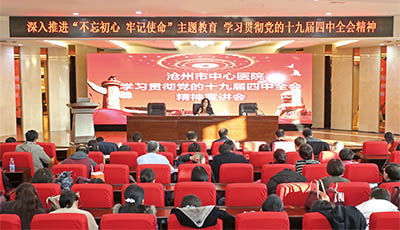 報(bào)告指出,黨的十九屆四中全會(huì),是我們黨站在“兩個(gè)一百年”奮斗目標(biāo)歷史交匯點(diǎn)上、在新中國(guó)成立70周年之際、在中華民族偉大復(fù)興關(guān)鍵時(shí)期,召開(kāi)的一次具有開(kāi)創(chuàng)性、里程碑意義的會(huì)議。要深入學(xué)習(xí)領(lǐng)會(huì)黨的十九屆四中全會(huì)精神,不斷把學(xué)習(xí)貫徹習(xí)近平新時(shí)代中國(guó)特色社會(huì)主義思想引向深入;要不斷鞏固和深化主題教育成果,自覺(jué)服務(wù)黨和國(guó)家工作大局,推動(dòng)主題教育與醫(yī)院中心工作相互促進(jìn)。