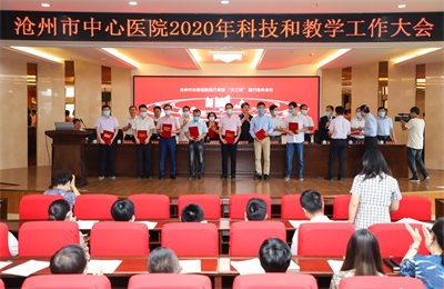 2020年是滄州市中心醫(yī)院建設(shè)國(guó)內(nèi)一流強(qiáng)院的關(guān)鍵之年。適逢9月10日教師節(jié),在這個(gè)特殊的年度、特殊的日子里,我院組織召開(kāi)2020年科技和教學(xué)工作大會(huì),隆重表彰在科學(xué)研究和教學(xué)工作方面取得突出成績(jī)、為醫(yī)院臨床教學(xué)工作和科技學(xué)術(shù)水平的提升做出重要貢獻(xiàn)的6個(gè)教學(xué)集體、53名教師,336個(gè)科技成果、優(yōu)秀論文及優(yōu)秀國(guó)家級(jí)繼續(xù)醫(yī)學(xué)教育項(xiàng)目的負(fù)責(zé)人,以及醫(yī)學(xué)科普技能大賽67個(gè)獲獎(jiǎng)作品和10個(gè)優(yōu)秀組織獎(jiǎng)的獲得者。