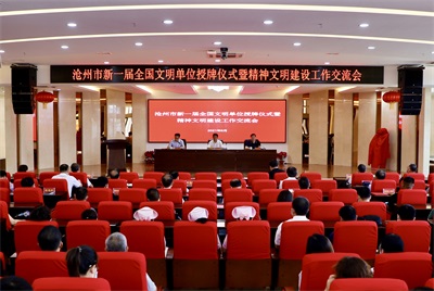 6月11日,滄州市新一屆全國文明單位授牌儀式暨精神文明建設(shè)工作交流會在我院舉行。市委常委、宣傳部長、市文明委副主任賈發(fā)林出席會議并講話。會議由市委宣傳部常務(wù)副部長、市文明辦主任賀治起主持。市文明辦專職副主任王德龍宣讀了表彰決定。