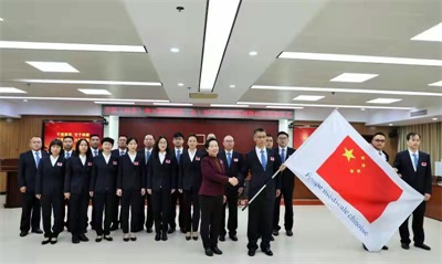經(jīng)過5個(gè)月培訓(xùn)后,11月15日,河北省衛(wèi)生健康委舉行中國(河北)第20批援剛果(金)醫(yī)療隊(duì)行前集訓(xùn)暨出征授旗儀式。我院CT診斷科陳德強(qiáng)作為醫(yī)療隊(duì)支援盧本巴希分隊(duì)隊(duì)長接受省衛(wèi)生健康委一級(jí)巡視員尹愛東授旗。