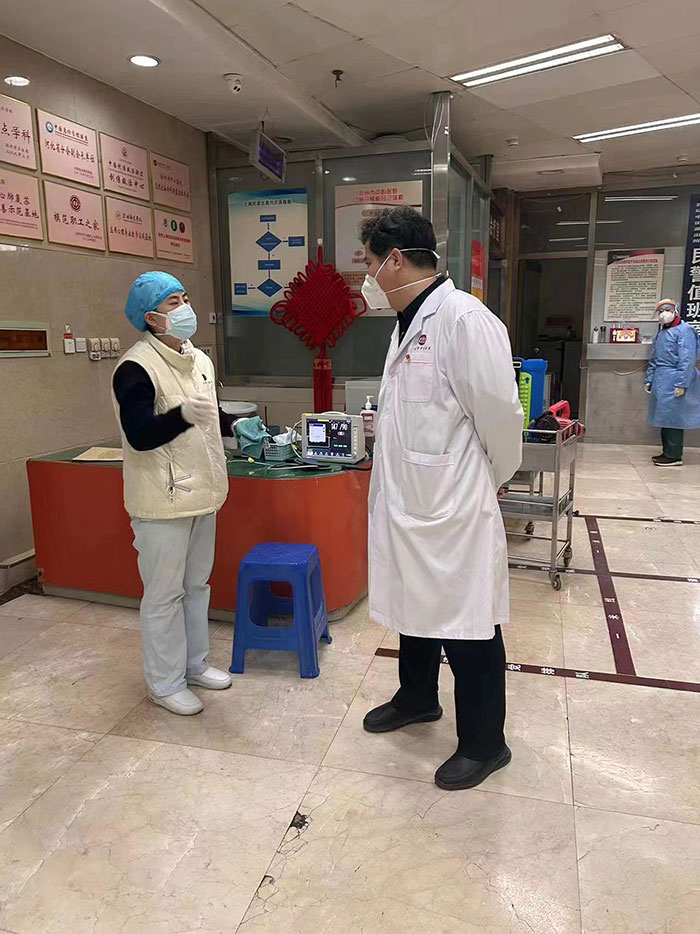 溫書記先后來到急診ICU和CT診斷科,在急診ICU重癥監(jiān)護(hù)病房,溫書記代表醫(yī)院黨委向長(zhǎng)期以來堅(jiān)守一線、無私無畏、沖鋒在前的醫(yī)護(hù)人員表示慰問和感謝。溫書記關(guān)切地了解了大家的身體狀況、精神狀況和科室運(yùn)行中存在的問題,就如何貫徹落實(shí)好新防控舉措提出要求。她強(qiáng)調(diào),疫情防控新常態(tài)下,危重病人多,人民群眾就醫(yī)需求強(qiáng)烈,我院作為百年名院,關(guān)鍵時(shí)期更要展現(xiàn)公立大院的形象與擔(dān)當(dāng),堅(jiān)持“生命至上、人民至上”的原則,堅(jiān)決扛起性命相托的責(zé)任,嚴(yán)格執(zhí)行首診負(fù)責(zé)制和急危重癥患者救治制度,盡全力優(yōu)先保障老弱重小等重點(diǎn)人群的醫(yī)療救治。