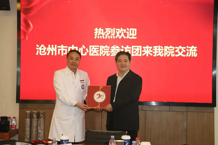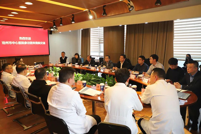2月23日,滄州市中心醫(yī)院黨委書記高廣明,黨委副書記、院長李勇帶隊赴北京大學(xué)首鋼醫(yī)院參觀交流,與北京大學(xué)首鋼醫(yī)院院長顧晉就雙方合作事項進行會談。滄州市中心醫(yī)院副院長徐澤升及相關(guān)科室負責人隨行。