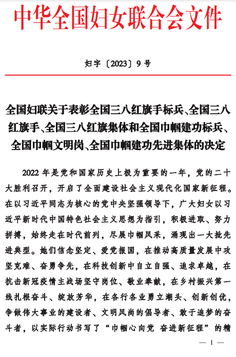 全國巾幗建功先進集體名單