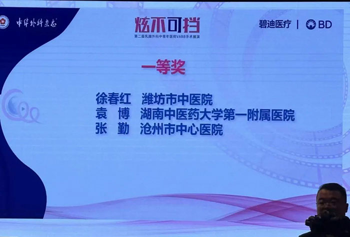 3月18日,由《中華外科雜志》舉辦的我國(guó)第二屆乳腺外科中青年醫(yī)師VABB手術(shù)展演總決賽在首都北京順利落下帷幕。滄州市中心醫(yī)院甲狀腺乳腺外三科張勤榮獲全國(guó)一等獎(jiǎng)。