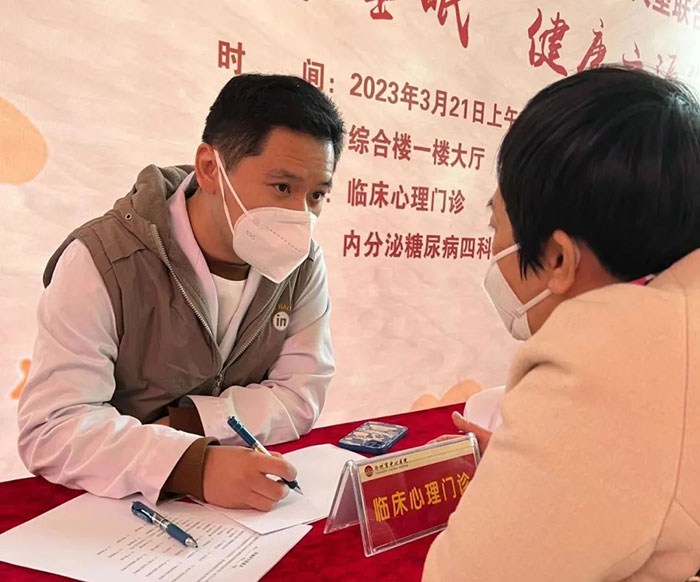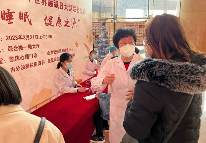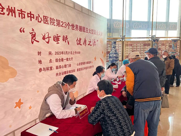 3月21日,滄州市中心醫(yī)院臨床心理門診、心血管病預(yù)防與康復(fù)科、內(nèi)分泌糖尿病四科、康復(fù)院區(qū)中醫(yī)針灸理療科在綜合樓一樓大廳聯(lián)合舉辦了“良好睡眠 健康之源”大型義診,受到睡眠困擾的居民紛紛前來咨詢。專家們現(xiàn)場為居民測量血壓血糖、中醫(yī)號脈問診,并且由專業(yè)心理治療師針對居民個體差異進行疏導(dǎo)治療,現(xiàn)場服務(wù)居民百余人。