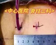 手術(shù)在全麻下進(jìn)行,消除了患者局麻手術(shù)的恐懼及疼痛感,手術(shù)過(guò)程安全無(wú)痛,術(shù)前經(jīng)過(guò)嚴(yán)格準(zhǔn)備,透視確定責(zé)任節(jié)段及切口位置,采取兩個(gè)約1cm手術(shù)切口就順利完成了病變節(jié)段內(nèi)鏡下椎板開(kāi)窗+椎管減壓+髓核摘除術(shù),術(shù)后患者立即感覺(jué)下肢疼痛明顯緩解,術(shù)后第二天下地行走,癥狀明顯改善,患者對(duì)手術(shù)效果非常滿意。