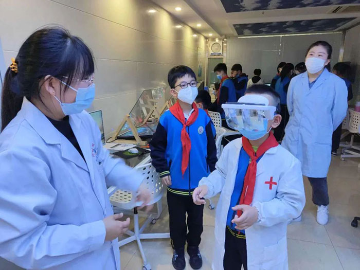 活動現(xiàn)場,孩子們穿上了白大褂,通過參觀知識大講堂、視光中心、近視防控中心、視覺知覺訓練中心,學習視力檢測儀器的使用、體驗?zāi)X力影像弱視訓練系統(tǒng)、紅閃多功能治療儀、三色光治療儀、圖形刺激器以及VR體驗等充滿趣味性的視覺訓練項目;通過直觀的圖像了解了眼球各結(jié)構(gòu)成像的光學表現(xiàn),讓同學們更加深入得了解了眼睛的工作原理?;顒咏Y(jié)束后,醫(yī)務(wù)人員還為孩子們贈送精美禮品。