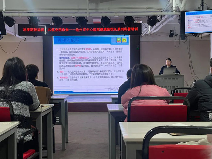 培訓特邀滄州市中心醫(yī)院醫(yī)療集團滄州眼科醫(yī)院視光中心主任王健,圍繞兒童青少年近視預(yù)防、近視的形成因素、近視防控措施等方面,從專業(yè)的角度進行了詳細講解,為參訓人員上了一堂生動的視力防控課。