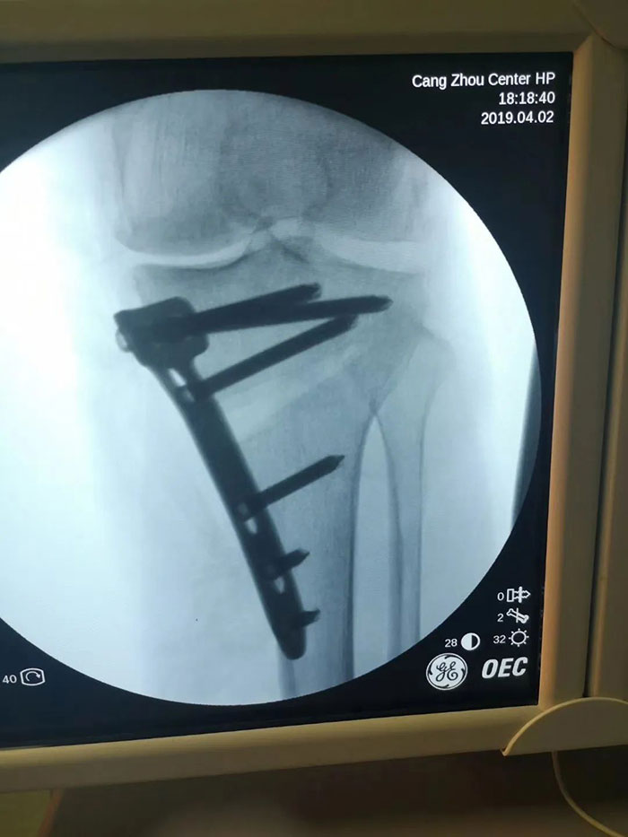 考慮到患者還年輕,能夠最大限度保留患肢功能,可保障她以后的日常生活。結(jié)合患者實(shí)際情況,關(guān)節(jié)外二科(骨五科)團(tuán)隊(duì)一致認(rèn)為關(guān)節(jié)鏡清理合并脛骨骨高位截骨術(shù)是首選治療方案。