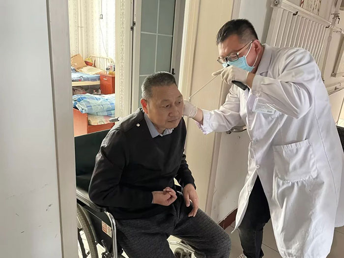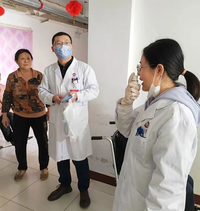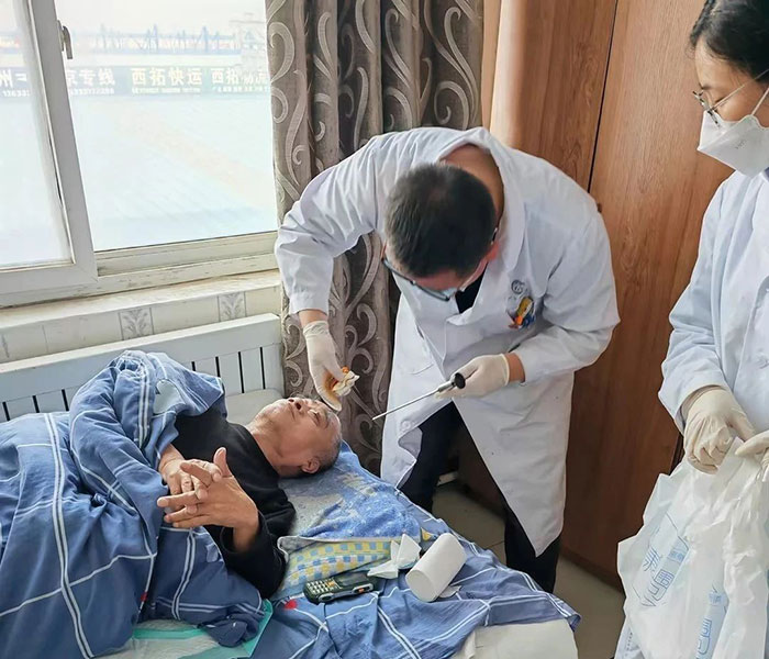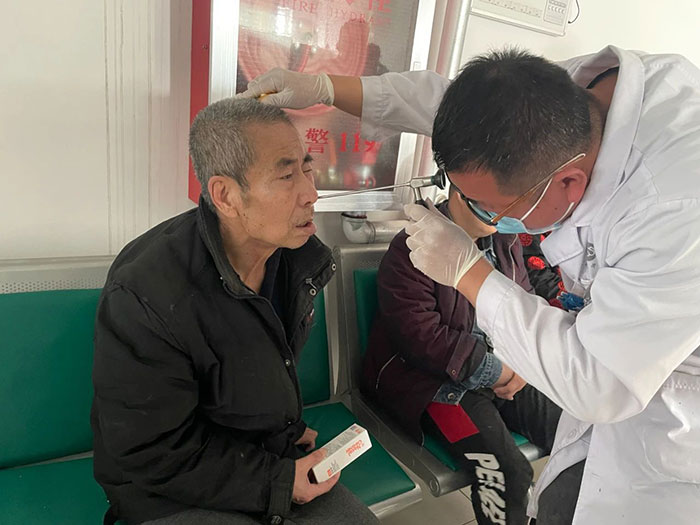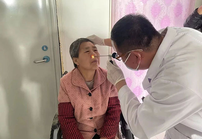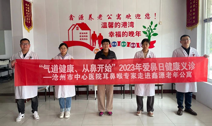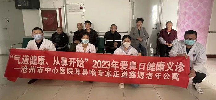 每年4月的第二個(gè)星期六是"全國(guó)愛(ài)鼻日"。4月9日,滄州市中心醫(yī)院耳鼻喉科王鵬、裴達(dá)、何媛媛、趙珊4位專家來(lái)到滄州市鑫源老年公寓,為公寓內(nèi)的40余名老人檢查了耳道和鼻腔,對(duì)鼻腔內(nèi)分泌物較多的老人發(fā)放了生理海水鼻腔噴霧器。由于部分老人行動(dòng)不方便,不能出門(mén)檢查,專家就依次來(lái)到老人的房間為他們做檢查。