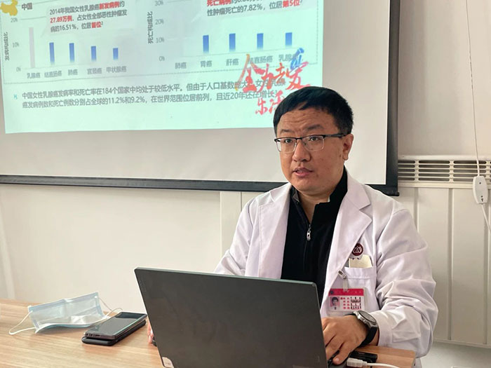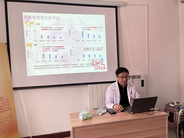 4月17日下午,甲狀腺乳腺外二科副主任丁明劍來到市場社區(qū)衛(wèi)生服務(wù)中心,為社區(qū)居民科普乳腺癌的相關(guān)知識,提升居民健康理念。